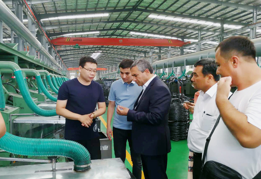 7月14日下午,烏茲別克斯坦KOKAND CITY州長 Usmonov Maruf蒞臨青龍劍釘業(yè)經(jīng)濟開發(fā)區(qū)公司。青龍劍釘業(yè)總經(jīng)理馬群澤熱情接待了到訪的Usmonov Maruf先生及隨行人員,并陪同Usmonov Maruf先生到車間進行參觀考察。
