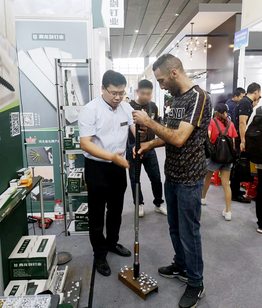 青龍劍展廳前人潮涌動,人氣火爆,此次展會展出了裝修用釘、建筑用釘、木工用釘、螺絲釘系列,吊頂釘固釘器產(chǎn)品系列,是所有參展商里產(chǎn)品最齊全、系列最多的。在此次展會展示了我們的新產(chǎn)品、新設(shè)計、新技術(shù)和新戰(zhàn)略,得到了參展者的強烈興趣和廣泛關(guān)注。