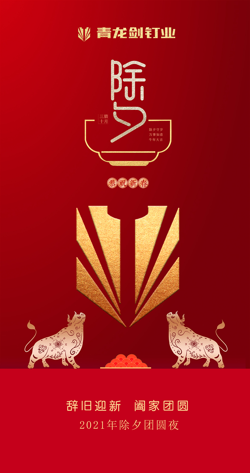 長(zhǎng)河悠遠(yuǎn),天地常新。2021年新春的曙光即將開(kāi)啟時(shí)間之門(mén),在這辭舊迎新的美好時(shí)刻,我們向關(guān)心和支持青龍劍公司發(fā)展的社會(huì)各界同仁、全國(guó)的經(jīng)銷(xiāo)商、供應(yīng)商和用戶(hù)朋友們致以親切的節(jié)日問(wèn)候和誠(chéng)摯的新春祝福!向奮斗在一線(xiàn)工作崗位、勤勉敬業(yè)的青龍劍員工致敬!