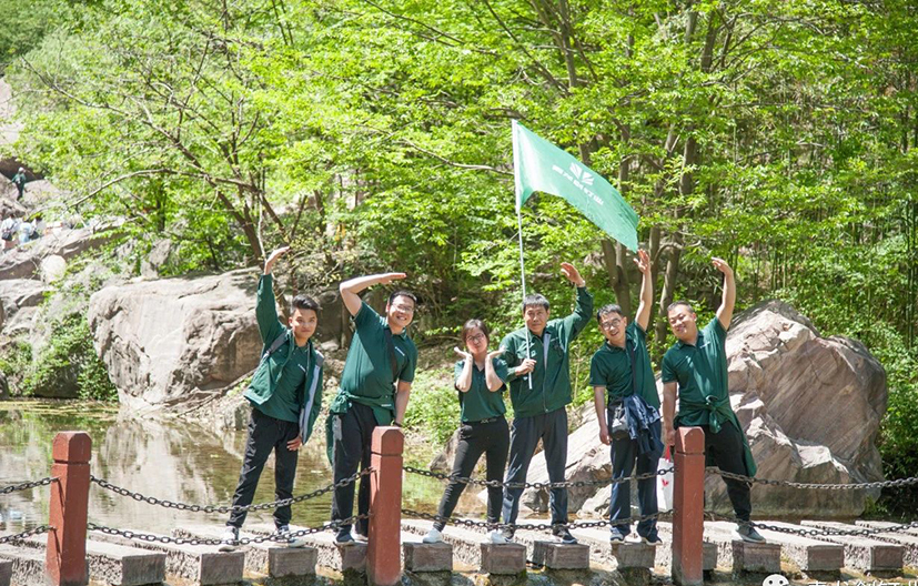 全體員工乘坐大巴赴河南八里溝景區(qū),團(tuán)隊(duì)在山腳下合影留念!