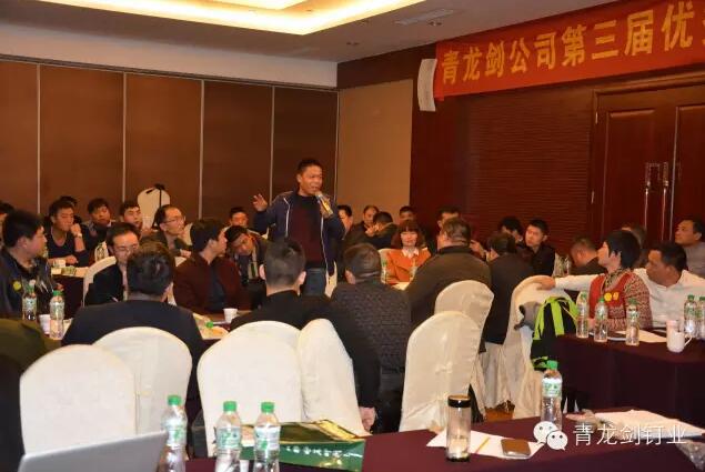 公司董事長(zhǎng)馬志華對(duì)全國(guó)經(jīng)銷商的到來(lái)表示誠(chéng)摯的感謝。——“感謝各位經(jīng)銷商來(lái)參加2016年度青龍劍公司第三屆優(yōu)秀經(jīng)銷商交流會(huì),歡聚一堂共同探討青龍劍釘業(yè)發(fā)展大計(jì)”。