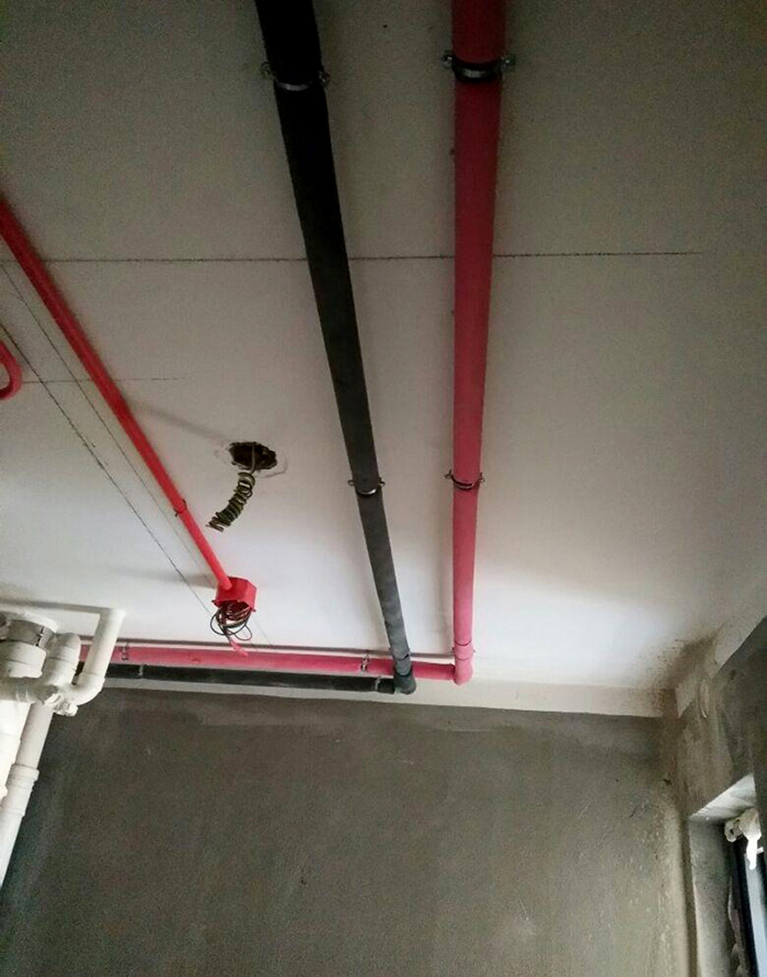 在標(biāo)準(zhǔn)裝修施工時(shí),強(qiáng)弱線路必須采用PVC管進(jìn)行套管保護(hù),并通過不同顏色的PVC管進(jìn)行區(qū)分,通常紅色PVC管為強(qiáng)電,藍(lán)色PVC管為弱電。
