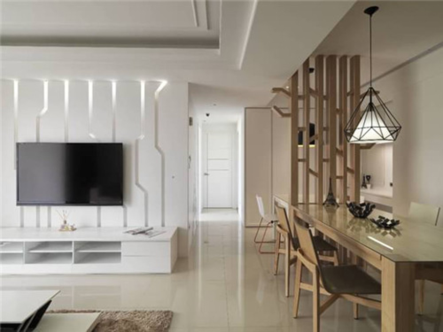 3. 現(xiàn)代裝修中,講究質(zhì)感的突出,其中白色是風(fēng)格最常用的色彩,不僅增加室內(nèi)光亮度,而且有利于室外陽(yáng)光的撒入。因此很多電視背景墻往往采用最簡(jiǎn)單的裝飾手法,通過(guò)線條的變化,產(chǎn)生律動(dòng)感,讓空間看起來(lái)更加有趣。